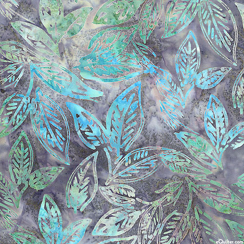 Leafy fronds rustling softly in the gentle passing of the wind are depicted in vivid hues within mottled batik textures. Batik, larger leaves are about 3-1/2", from the 'Chalk & Charcoal' collection by Riley Blake Designs.