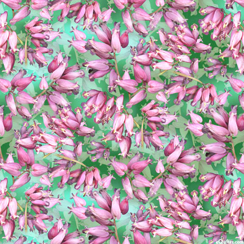 Budding blossoms fill the design with fragrant floral bliss. Digitally printed, larger flowers are about 3/4", 'Bleeding Heart' from the 'Tina's Wildflowers' collection by Tina Leto for Clothworks.