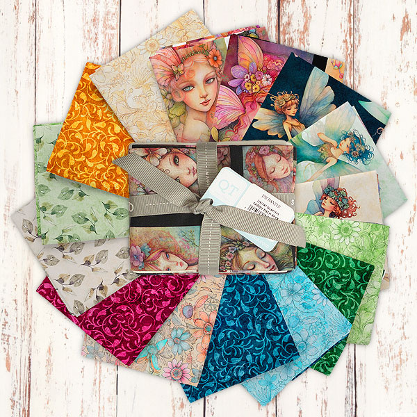 Enchanting fairies and garden-themed motifs coalesce in this magical pre-cut! 'Enchanted' fat quarter pack by Dan Morris for Quilting Treasures, pack includes fifteen fat quarters.