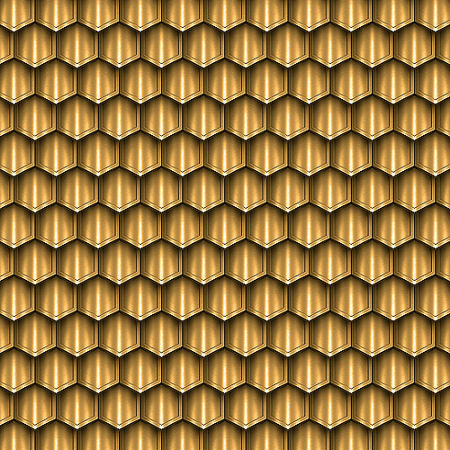 A repetitive pattern of glimmering hexagons resemble the metal scale armor worn by the mighty knights protecting the kingdom from evil. Digitally printed, hexagons are about 1/2", 'Mystical Hexagons' from the 'Legendary Journeys' collection by Jason Yenter for In The Beginning Fabrics.