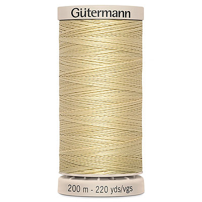 This hand quilting thread is made of 100% mercerized cotton and is a special hand thread for quilting. The waxed surface ensures smooth running and prevents wrinkles when processing by hand. Suitable for all materials and fabrics. Recommended needles (eQuilter codes): BONDL603, UNTHN89E, UNTHN03E, & UNTHN05E. Hand Quilting Thread by Gütermann, 100% cotton, 40 weight/3 ply, 220 yards, Cream.