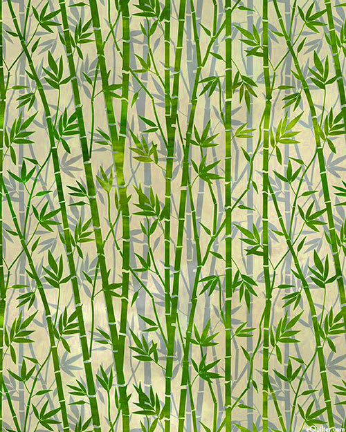 A peaceful bamboo forest creates an elegant design. Digitally printed, wider bamboo is about 1/8", from the 'Oriental Gardens' collection by Jason Yenter for In The Beginning Fabrics.