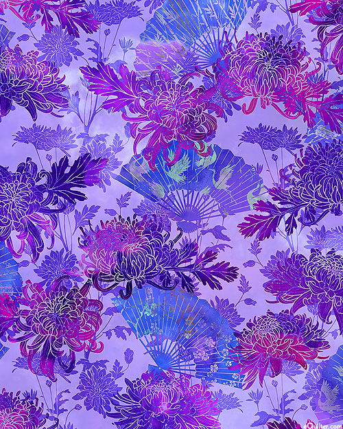 In The Beginning Fabrics Oriental Gardens - Mums & Fans - Lilac Purple