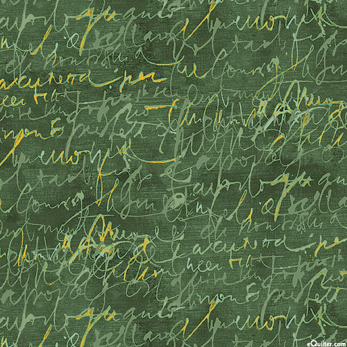 Cursive handwriting is displayed across the design in intricate and elegant detail that shows off the charming penmanship of the writer. Taller script is about 1-1/2", with gold metallic, 'Fluidity Script Large' from the 'Fluidity' collection by Marta Cortese for Benartex.