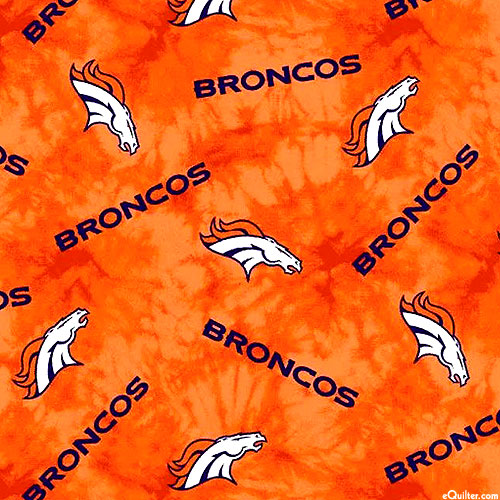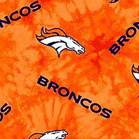 The iconic logo of the Denver Broncos is tossed all over this cozy tie-dye flannel. Flannel, 'Broncos' text is about 2-1/4", 'NFL Denver Broncos Tie Dye' from the 'Team Shop' collection by Fabric Traditions.