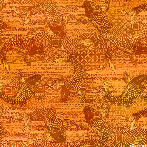 In The Beginning Fabrics Oriental Gardens - Koi Dance - Pumpkin Orange