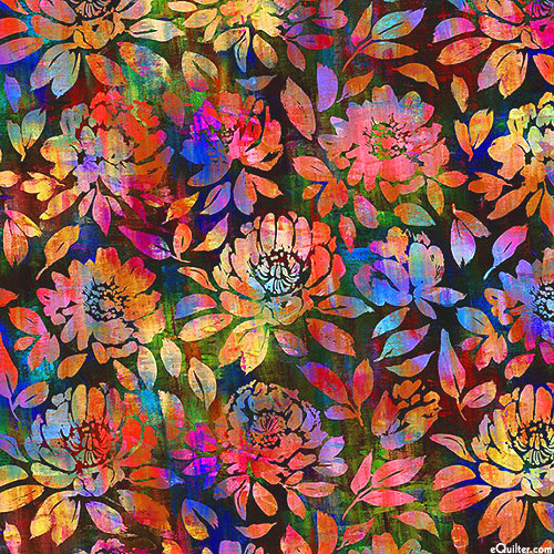A lush landscape of flourishing flowers coalesce to create a captivating garden gala of texture and tone. Digitally printed, larger flowers are about 2-1/2", from the 'Halcyon II' collection by Jason Yenter for In The Beginning Fabrics.