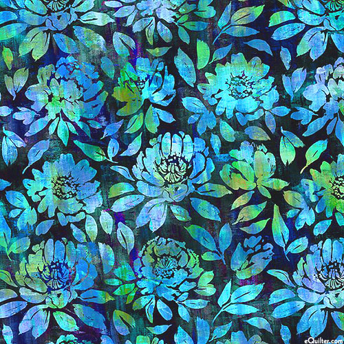 A lush landscape of flourishing flowers coalesce to create a captivating garden gala of texture and tone. Digitally printed, larger flowers are about 2-1/2", from the 'Halcyon II' collection by Jason Yenter for In The Beginning Fabrics.