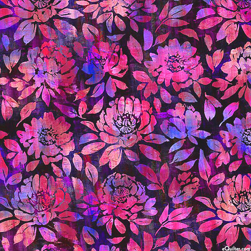 In The Beginning Fabrics Halcyon II - In Bloom - Midnight Purple