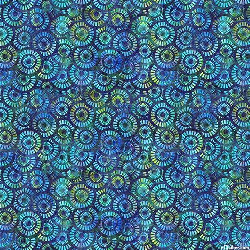 Round medallions overlap endlessly in a vibrant expression of color across this beautiful blender. Digitally printed, larger medallions are about 3/4", from the 'Halcyon II' collection by Jason Yenter for In The Beginning Fabrics.