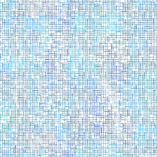 A crosshatched grid of lines reminiscent of canvas is depicted in vivid hues within mottled textures. Digitally printed, lines are about 1/32", from the 'Halcyon II' collection by Jason Yenter for In The Beginning Fabrics.