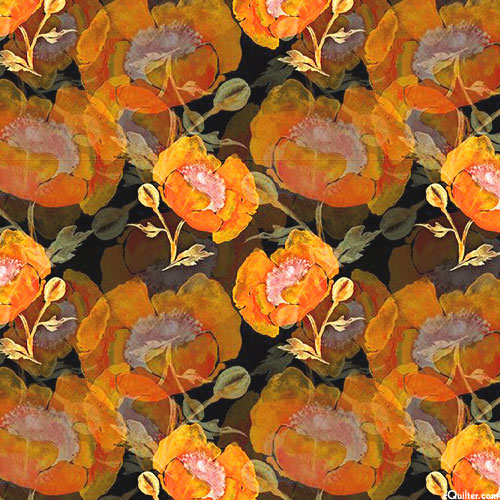 A lush landscape of flourishing flowers coalesce to create a captivating garden gala of texture and tone. Larger flowers are about 2-1/4", from the 'Reflections of Autumn 2' collection by In The Beginning Studio for In The Beginning Fabrics.
