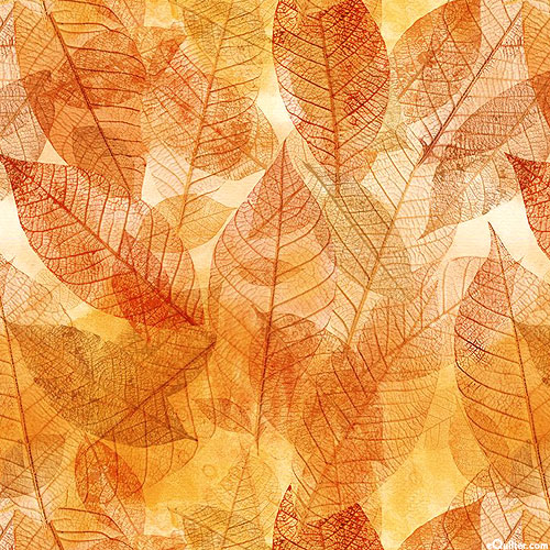 Leafy fronds one might find on the forest floor in autumn are scattered across this tranquil tonal. Larger leaves are about 5", from the 'Reflections of Autumn 2' collection by In The Beginning Studio for In The Beginning Fabrics.