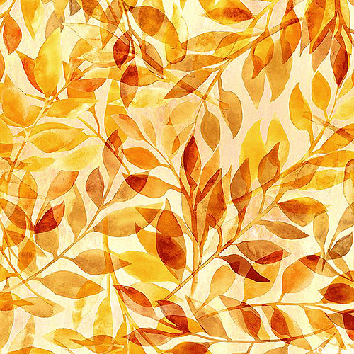 Leafy fronds one might find on the forest floor in autumn are scattered across this tranquil tonal. Larger leaves are about 2", from the 'Reflections of Autumn 2' collection by In The Beginning Studio for In The Beginning Fabrics.