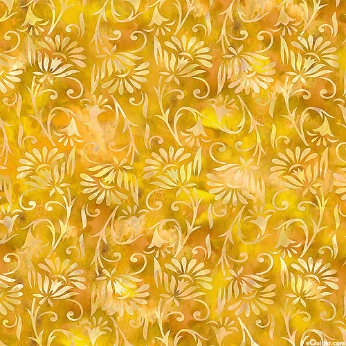 In The Beginning Fabrics Prism II - Tossed Blossoms - Saddle Gold