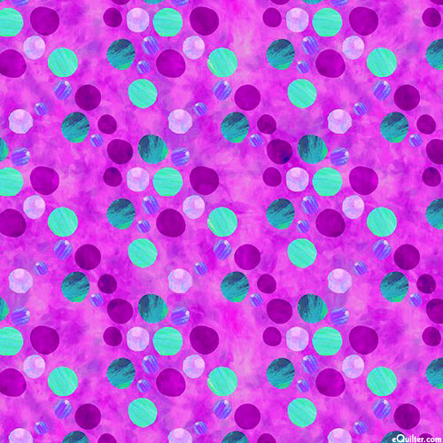 An abstract array of bubbly shapes comes to life in a vivid spectrum of painterly hues. Digitally printed, larger dots are about 1/2", from the 'ABC's of Color' collection by Jennifer Heynen for In The Beginning Fabrics.