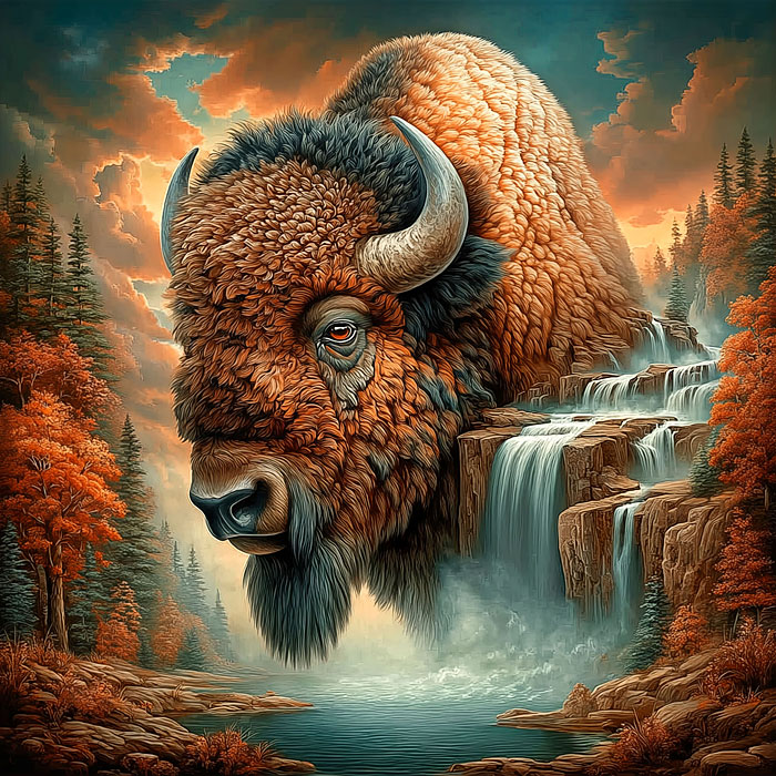 Emerging from the forest itself is a wild aspect of nature in the form of a mighty bison in this picturesque panel. Digitally printed, 43" panel, 'Wilderness View Bison' by the Rubin Design Studio, designed exclusively for eQuilter.