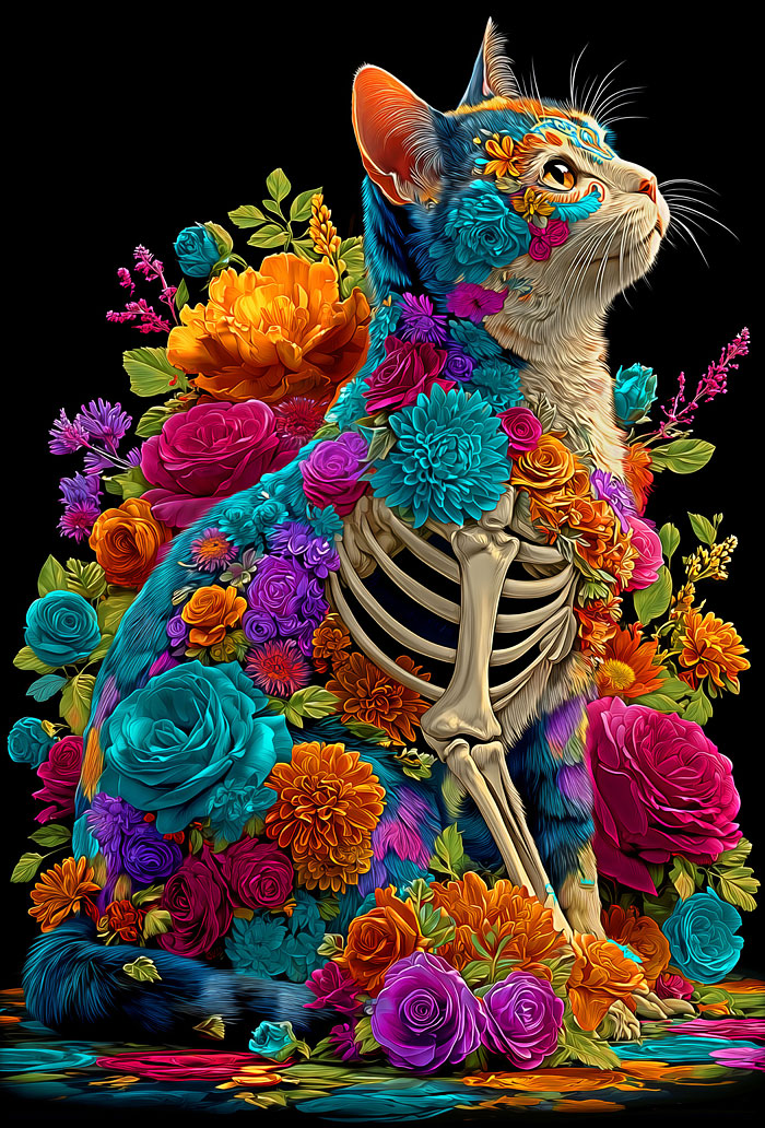 Rubin Design Studio Dia De Los Muertos Kitty - Black - 29" x 44" PANEL