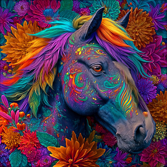 Gallant and mighty, a handsome depiction of a wild horse decorated in vibrant florals comes to life in bright painterly hues across this picturesque panel. Digitally printed, 43" panel, 'Horse Lightning Full Panel 1' by the Rubin Design Studio, designed exclusively for eQuilter.