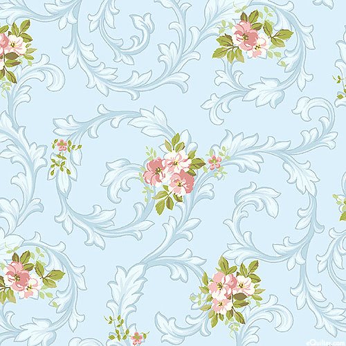 A lush landscape of flourishing flowers coalesce to create a captivating garden gala of texture and tone. Digitally printed, larger bouquets are about 1", 'Floral Scroll' from the 'Just Rosy' collection by The Smithsonian Institution for Marcus Fabrics.