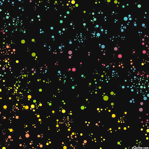 Small paint spatters come to life against a solid background. Larger dots are about 1/4", from 'Fizz' collection by Giucy Giuce for Andover Fabrics.