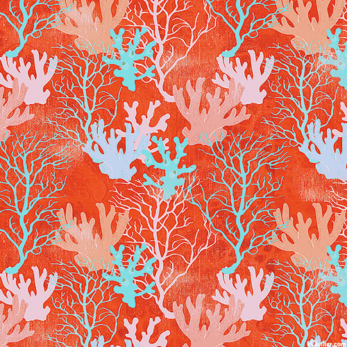 A glimpse beneath the waves reveals a vibrant world flourishing with coral and kelp. Larger coral is about 1-3/4", 'Coral Reef' from the 'Under The Sea' collection by Skyline Studios for Benartex Fabrics.