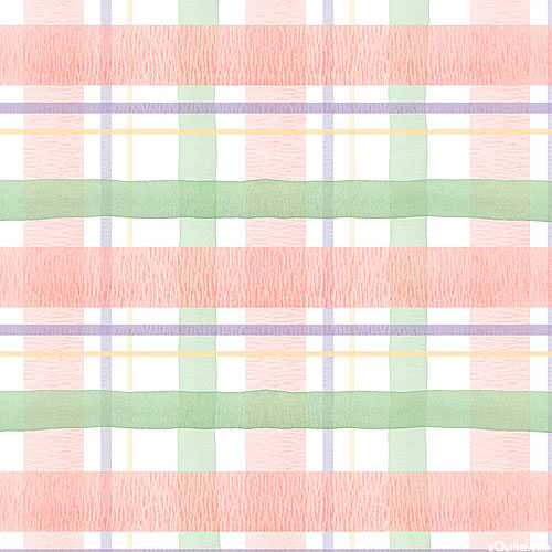 A pleasant plaid pattern one might find on a picnic blanket lends a springtime charm to the design. Wider lines are about are about 5/8", 'Blooming Plaid' from the 'Blooming Bunnies' collection by Katrina Pete, Licensed by Wild Apple for David Textiles.