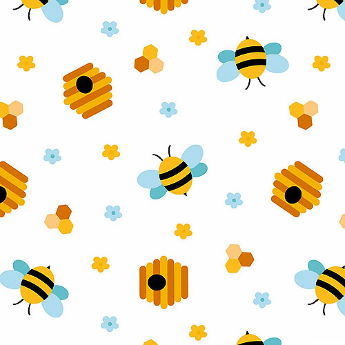 Honeybees buzz busily between lush flowers and their beehives in this charming design. Larger bees are about 1", 'Beehive Party' by David Textiles.
