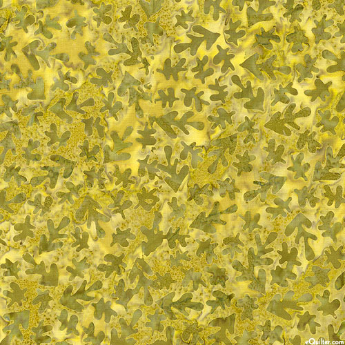 A lush scatter of leafy fronds are depicted in vivid hues within mottled batik textures. Batik, larger leaves are about 1", from the 'Organics' collection by Banyan Batiks for Northcott Fabrics.