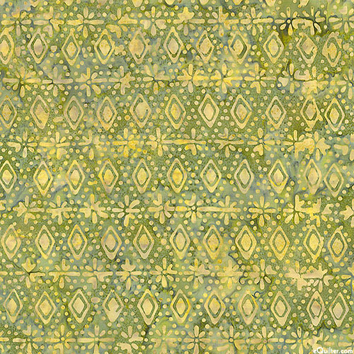 Northcott Fabrics Tile Fusion - Diamonds & Florals Batik - Palm Green