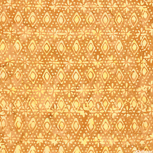 Repeating tiles of alternating diamond and floral shapes are depicted in vivid hues within mottled batik textures. Batik, larger diamonds are about 3/4", from the 'Tile Fusion' collection by Banyan Batiks for Northcott Fabrics.