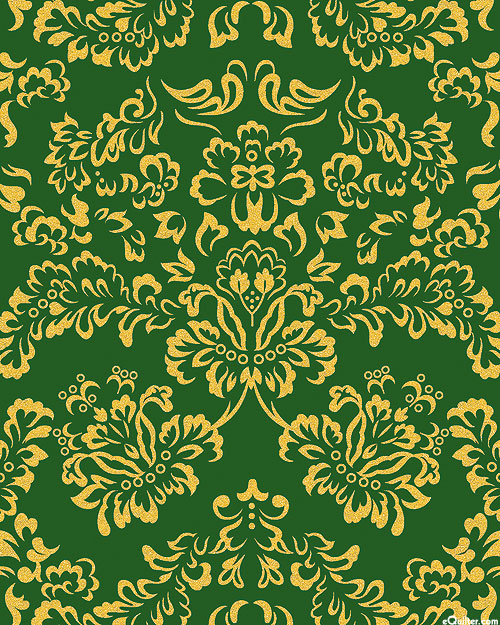 Larger flowers are about 2", with gold metallic, 'Elegant Filigree' from the 'Holiday Keepsakes' collection by Jackie Robinson for Benartex Fabrics.