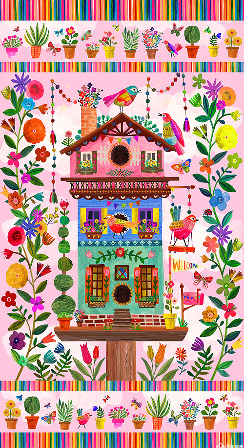 Michael Miller Fabrics Songbird Garden - Birdhouse - Candy Pink - 24" x 44" PANEL