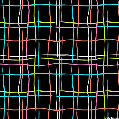 Wobbly lines overlap to create a groovy plaid pattern across the design. Digitally printed, lines are about 1/16", 'Wobbly Plaid' from the 'Yesteryear' collection by MK Surface for Michael Miller Fabrics.
