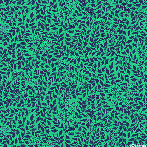 Lurking in the jungle are several small dinosaurs dHidden between the flourishing leaves of this prehistoric blender. Digitally printed, larger dinosaurs are about 1-5/8", 'Find Dino' from the 'Dino Pizza Party' collection by Michael Miller Fabrics.
