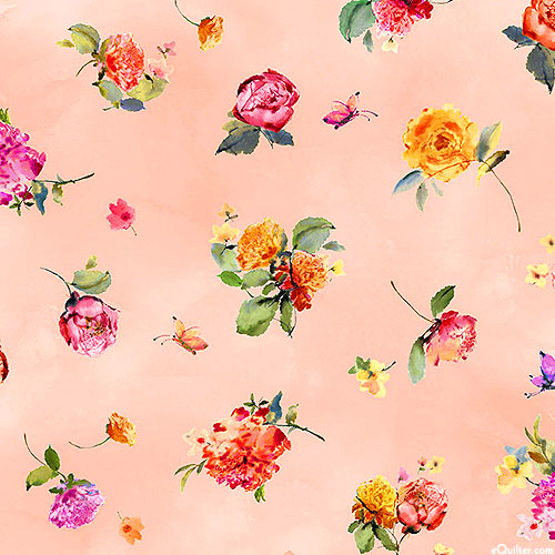 Michael Miller Fabrics Primrose Garden - Tossed Bouquets - Dusty Peach