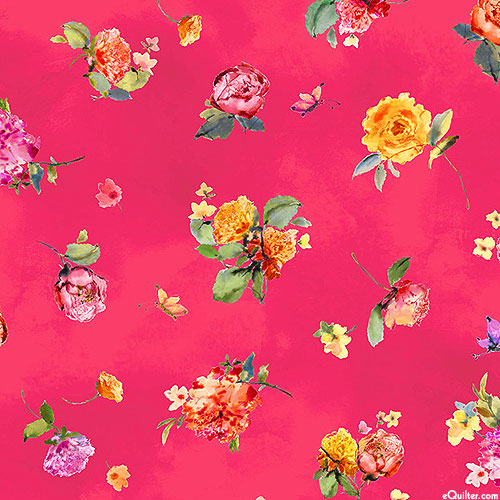 Michael Miller Fabrics Primrose Garden - Tossed Bouquets - Raspberry Sorbet