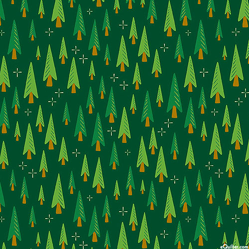 Tall trees scattered across the mountainside lend a natural charm to this woodsy design. Digitally printed, larger trees are about 1", 'Flying Forest' from the 'Aviation Adventures' collection by Zirkus Design for Michael Miller Fabrics.