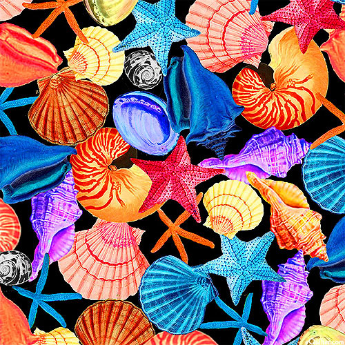 Michael Miller Fabrics Seaing - Seashell Collage - Black