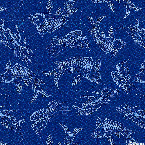 Koi fish swim through the waves against a scalloped background in this charming Asian print. Digitally printed, larger fish are about 2-5/8", 'Swimming Koi' from the 'Silk Road' collection by Bloomery Decor for Michael Miller Fabrics.
