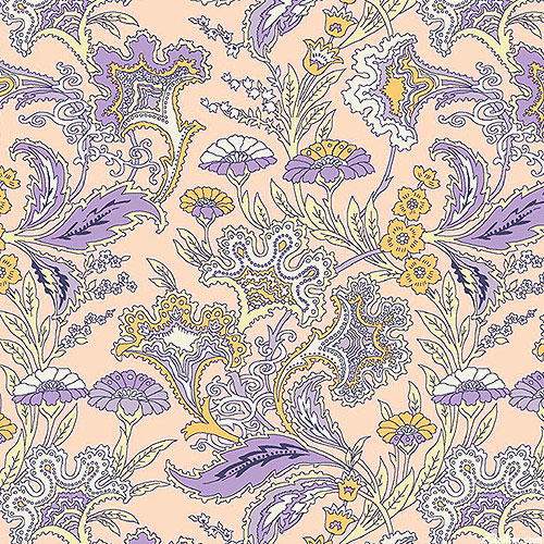 Scrolling florals styled like an elegant wallpaper bring an antique charm to this unique blender. Digitally printed, larger flowers are about 1-1/4", 'Bohemia' from the 'Blossom Bliss' collection by Michael Miller Fabrics.