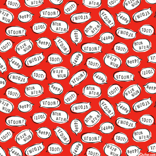 Speech bubbles contain a whimsical variety of car horn sounds including, "vroom", "toot", "beep", and more! Digitally printed, larger speech bubbles are about 1", from the 'Vroom Vroom' collection by Quilting Treasures.
