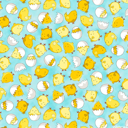 Adorable baby chicks freshly hatched from their eggs are scattered against a mottled background in this fun and festive Easter-themed design. Digitally printed, larger chicks are about 3/4", from the 'Hoppy Easter' collection by EunYoung Otsuki for Quilting Treasures.