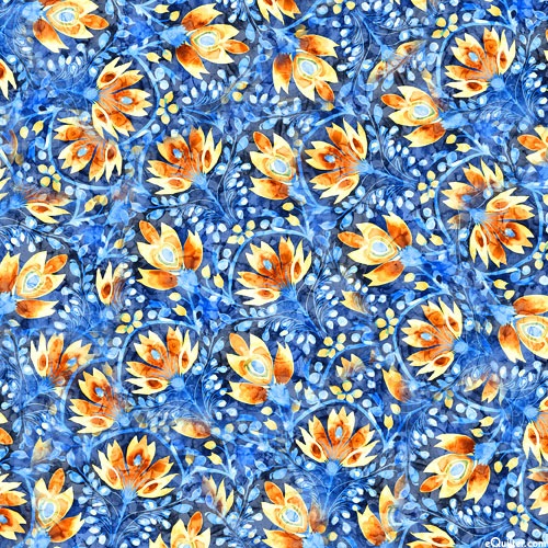 Quilting Treasures Midnight Blooms - Wildflowers - Sapphire Blue