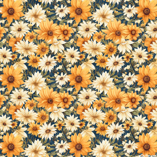 A lush landscape of flourishing flowers coalesce to create a captivating garden gala of texture and tone. Digitally printed, larger flowers are about 1-1/4", from the 'Queen Bee' collection by Dan Morris for Quilting Treasures.