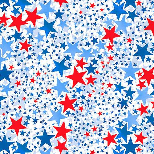 Red, white, and blue stars are scattered the design in a proudly patriotic display. Please prewash and allow for up to 7% shrinkage. 108" wide quilt backing, larger stars are about 1", 'Starlight' from the 'Patriotic 108"' collection by Kanvas Studio for Benartex Fabrics.