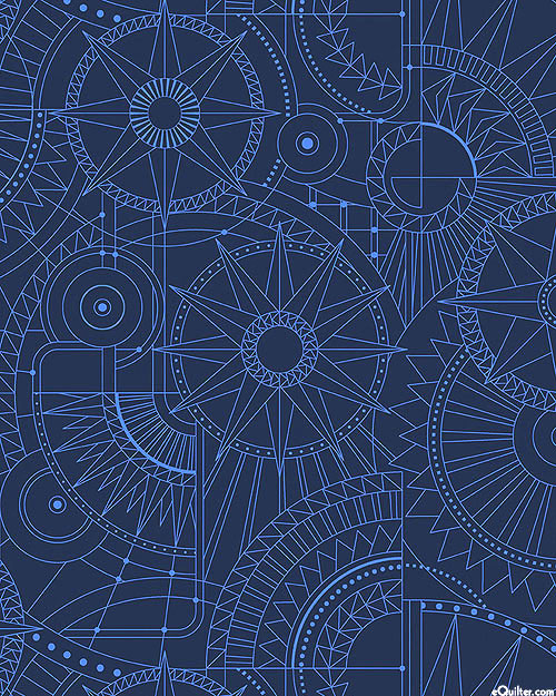 Mandalic star patterns are depicted as line art in a unique blueprint-like style. Please prewash and allow for up to 7% shrinkage. 108" wide quilt backing, larger stars are about 4-3/4", 'Blueprint' from the 'Cityscape 108"' collection by Amanda Murphy for Benartex Fabrics.