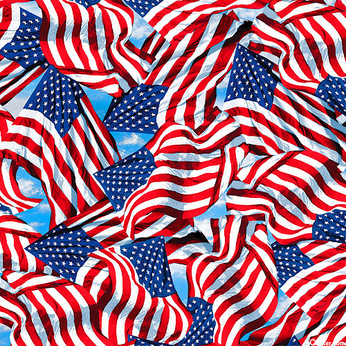 Billowing flags depicted against a blue sky are scattered across this proudly patriotic design. Please prewash and allow for up to 7% shrinkage. 108" wide quilt backing, larger flags are about 3-1/2", 'All American Flags' from the 'Patriotic 108"' collection by Benartex Fabrics.