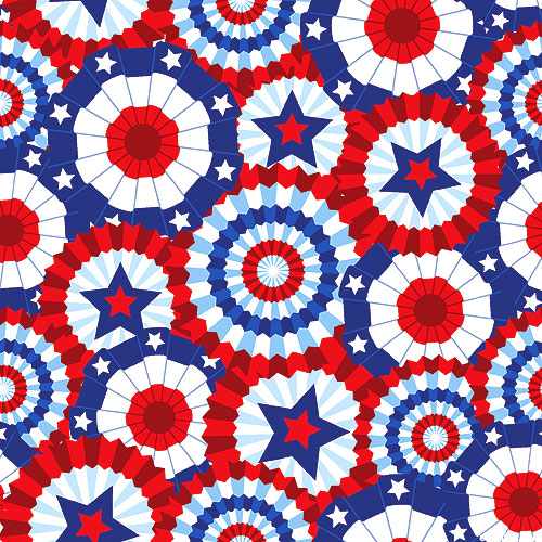 Bold medallions patterned in stars and striped overlap across this proudly patriotic design. Please prewash and allow for up to 7% shrinkage. 108" wide quilt backing, larger banners are about 2-1/2", 'Banner Celebration' from the 'Patriotic 108"' collection by Benartex Fabrics.