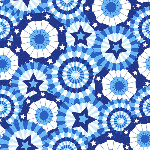 Bold medallions patterned in stars and striped overlap across this proudly patriotic design. Please prewash and allow for up to 7% shrinkage. 108" wide quilt backing, larger banners are about 2-1/2", 'Banner Celebration' from the 'Patriotic 108"' collection by Benartex Fabrics.